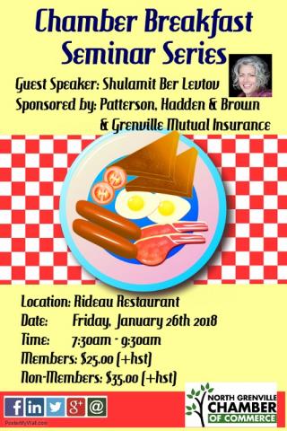 Thank you to everyone who attended our Breakfast Seminar this morning at the New Rideau Restaurant. We had great turn out and an excellent speaker, Shulamit Ber Levtov from Compassionate Support for Stressful Times here in Kemptville.