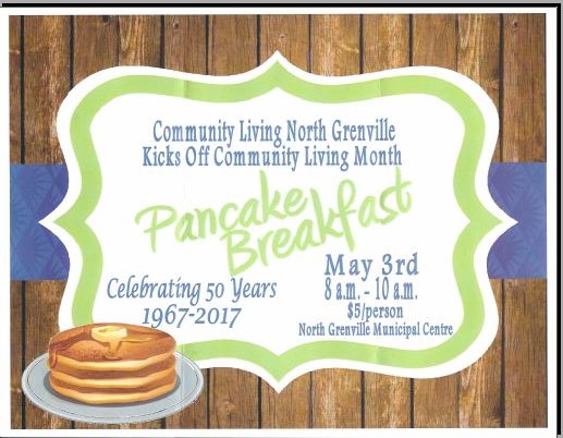 Community Living North Grenville Kicks off Community Living Month with a Pancake Breakfast, Celebrating 50 years 1967-2017.
