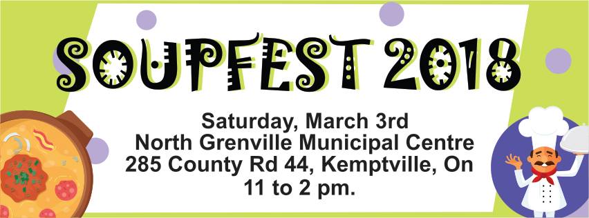 Calling all Soup Lovers! Grab your appetite and your judging cap for the 10th annual Soupfest. Come out to the Municipal Centre on March 4th from 11:00 am to 2:00 pm where you will meet Chefs from restaurants in Eastern Ontario offering you their best soup from scratch. You decide which one will get your vote for the People’s Choice Award.