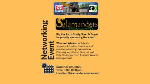 Join us for an inspiring evening of connection and learning at our Wine and Wisdom Networking Event, proudly sponsored by Greely Sand & Gravel.