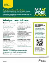 What you need to know.....Minimum Wage, Vacation Time and Pay, Hours of Work and Overtime, Leaves of Absence, Public Holidays, Termination Notice and Pay.